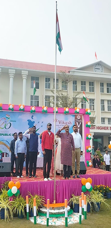 75th Republic Day at Vikash Group of Institutions, Bhawanipatna was celebrated with the presence of management members, principals, staff, and students. The spirited event featured student participation in a vibrant parade, culminating in the national flag being hoisted by Mr. Maheswar Das, DDO, NABARD, Kalahandi adding patriotic fervour to the commemoration.